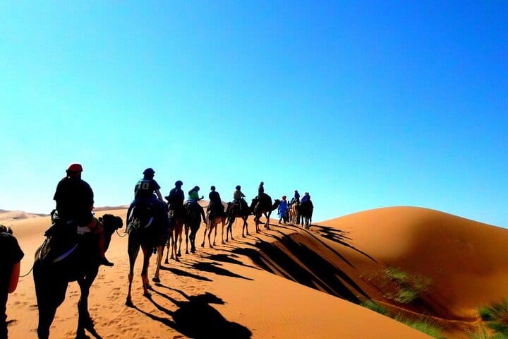 Experience a 3-day Sahara adventure from Marrakech to Merzouga. Ride camels across the Erg Chebbi dunes, enjoy traditional Moroccan meals, and spend a magical night in a Berber desert camp