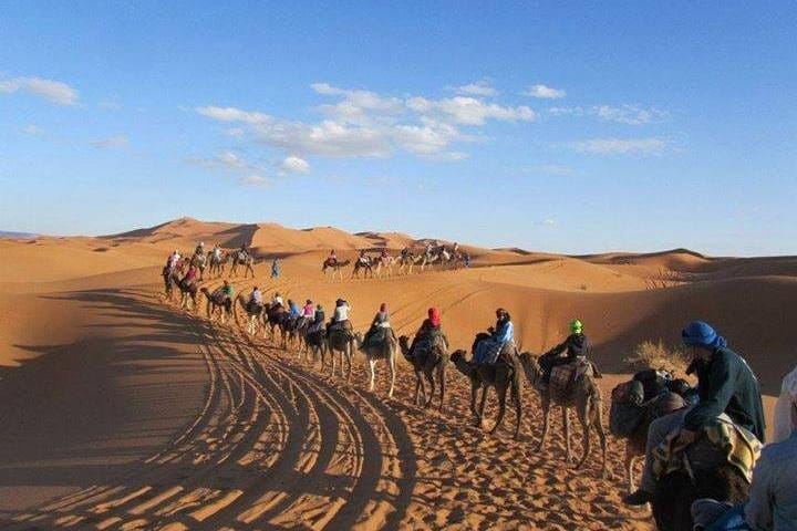 Experience a 3-day Sahara adventure from Marrakech to Merzouga. Ride camels across the Erg Chebbi dunes, enjoy traditional Moroccan meals, and spend a magical night in a Berber desert camp